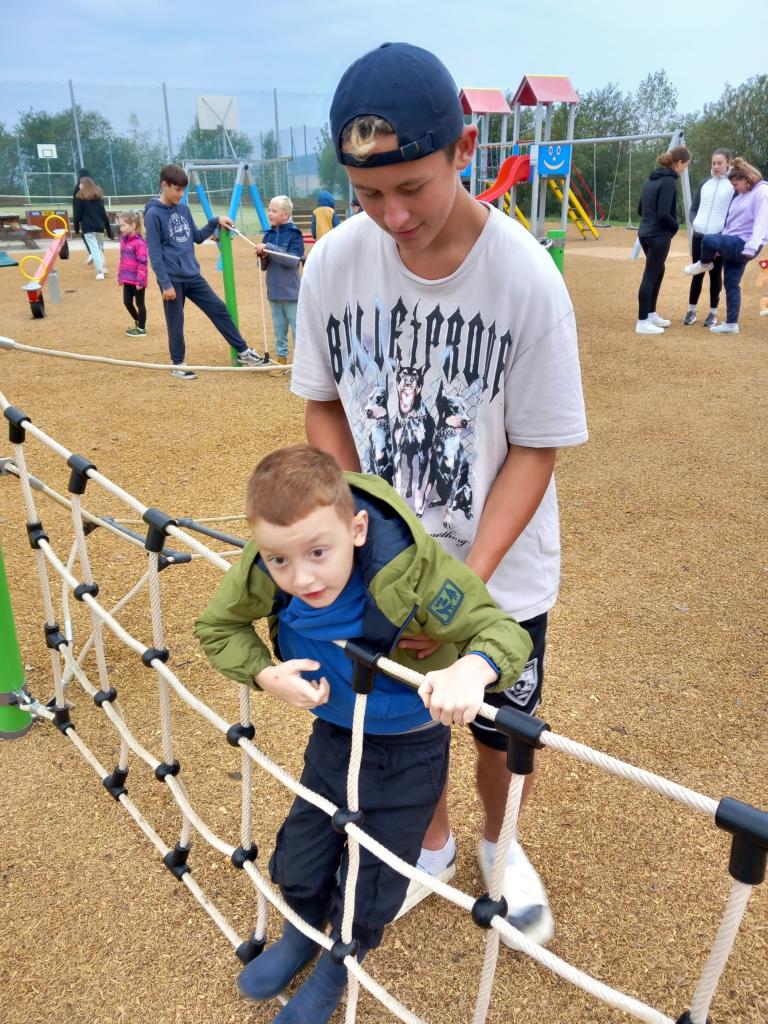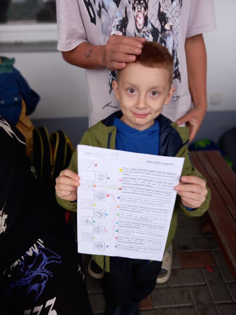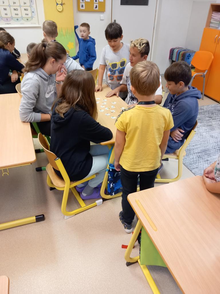 Dne 24.9.2024 se naši prvňáčci společně se svými patrony z deváté třídy vydali na podzimní cvičení v přírodě. Vzhledem k nepříznivé předpovědi počasí jsme se raději nepouštěli nikam daleko, a tak jsme využili místní hřiště. Nejprve jsme se však sešli v první třídě, kde jsme plnili úkoly z dopravní výchovy a zahráli si pexeso s dopravní tematikou. Na hřišti jsme se pak věnovali sportovním aktivitám a zbyl čas i na soutěž družstev s tajenkou. I přes nepřízeň počasí jsme si společně akci užili a už se všichni těšíme na příště.