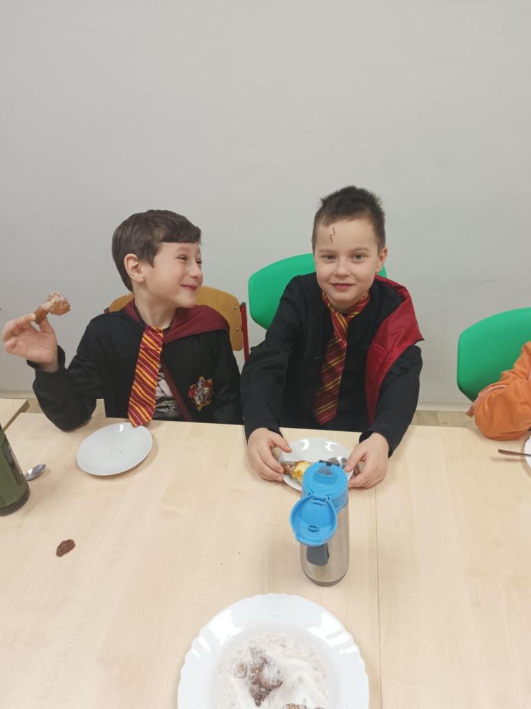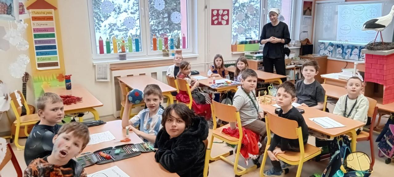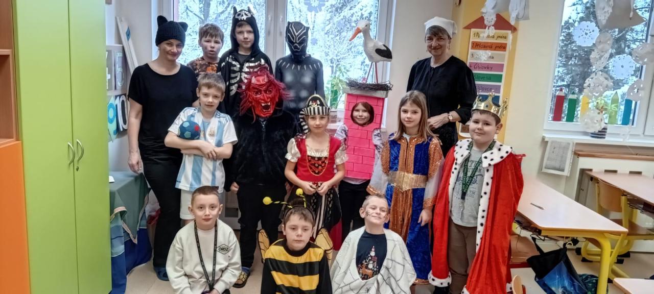 17.2. žáci 1. stupně prožili masopustní projektový den. Přišli v kostýmech, četli o masopustu, počítali masopustní úlohy, zpívali, tančili, tvořili. Na závěr průvod došel k radnici, kde byli všichni přivítáni paní starostkou. Na závěr celého dne symbolicky pohřbili basu.